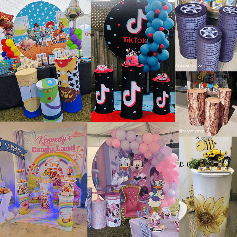 Free shipping for this set of cylinder pedestals. Reusable and stable, change covers for different themes would be ok.