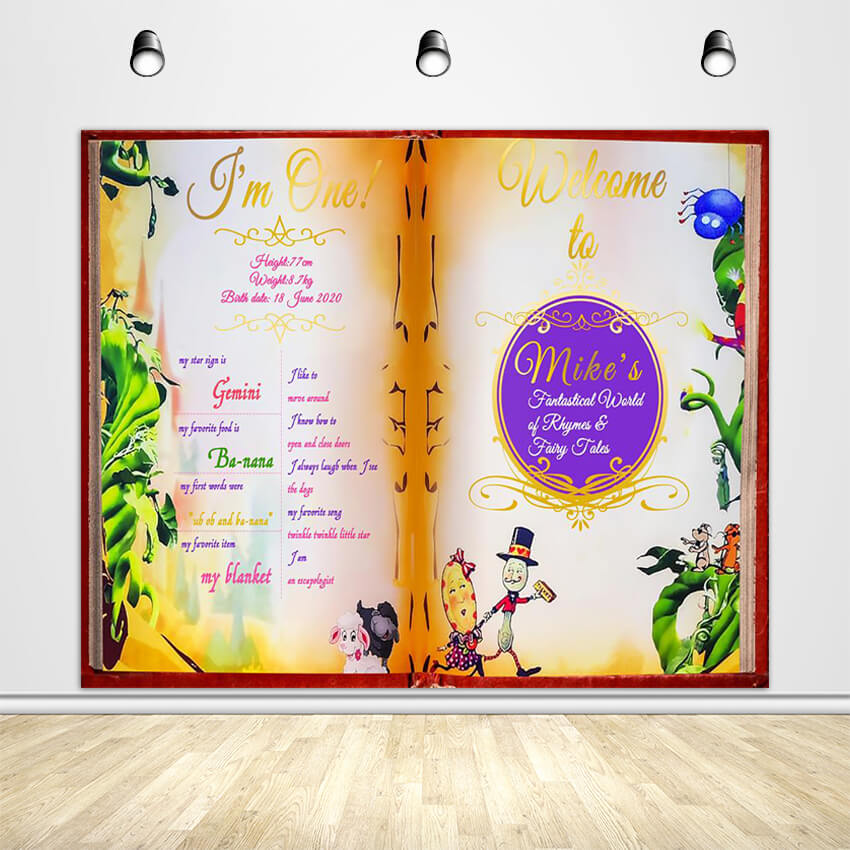 Are you looking for a custom storybook backdrop for kid's first birthday party decoration? Ubackdrop personalized 1st birthdy fabric backdrop banner helps make your own custom backdrop gorgeous. Our fabric printed backdrops help make your party memorable.